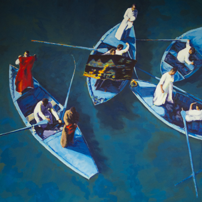 sellers on the nile, 2013, acrylic on cotton, 100x100 cm